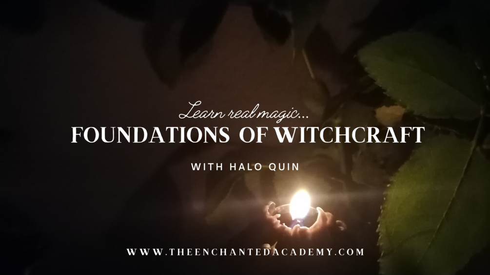In the 4 week Foundations of Witchcraft course at The Enchanted Academy (TEA) with author, teacher, and witch, Halo Quin, we cover theory and practice, getting started with energy work, grounding and shielding, beginning your relationship with spirits, exploring the magical elements, materials in spellcrafting, how spells work, and a multipurpose candle ritual.